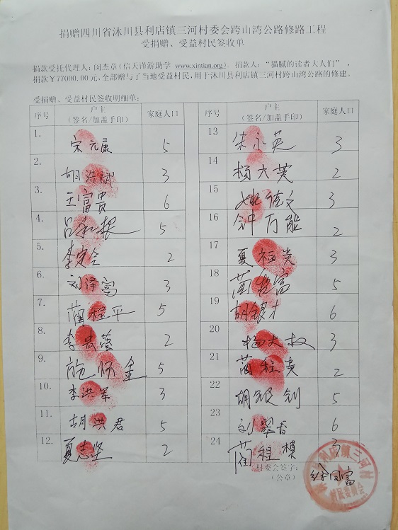 拟捐款:¥77000元,不足的由村委会自行解决。