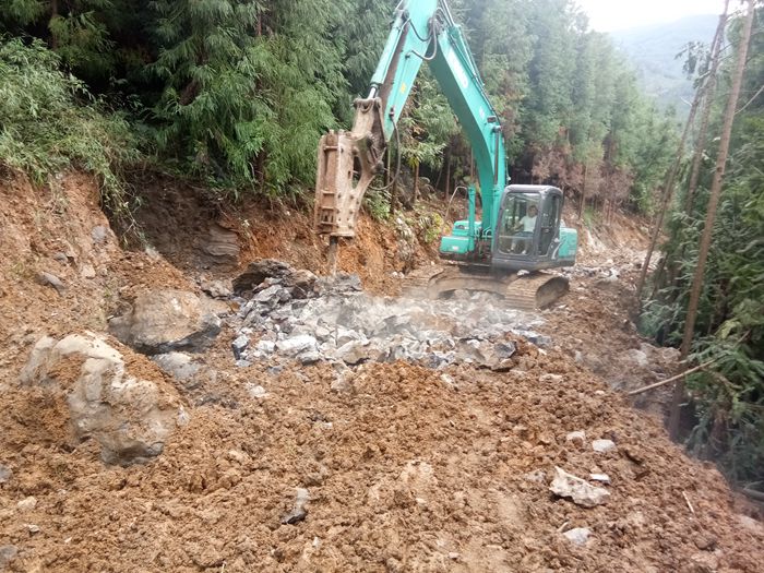 路上很多岩石,整块大岩石,需要破碎,施工难度很大。