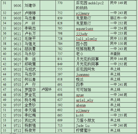 135-01        9523        肖继英        民中146班        dav0611