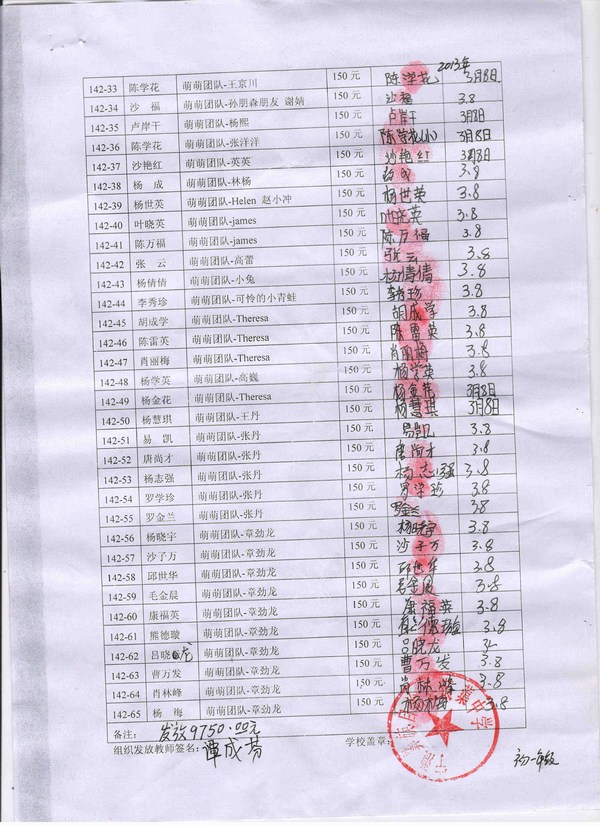 » 第142批受助生名单(蒗渠中学65名,萌萌团捐)
