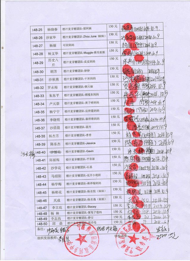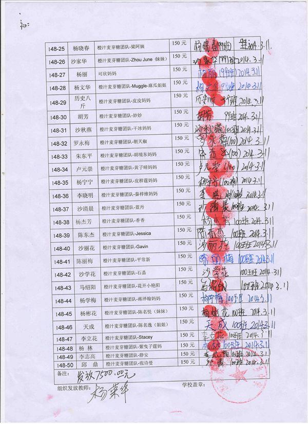第148批战河中学(2014年3月到2014年7月)受助学生签收单