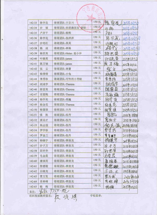 第142批l蒗渠中学(2015年3月-2015年8月)受助学生签字确认单