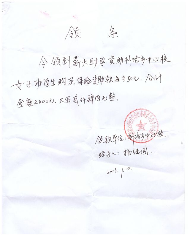 标题: 四川布拖女童班第2年(2013年9月-2014年7月)资助汇总报告