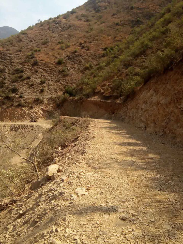 茶花村公路遇到坚硬岩石了,两台挖掘机每天只能推进5、6米。