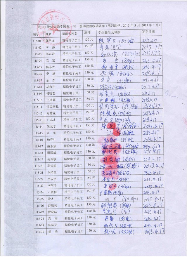 第115批战河中学(2013年3月到2013年7月)受助学生签收单