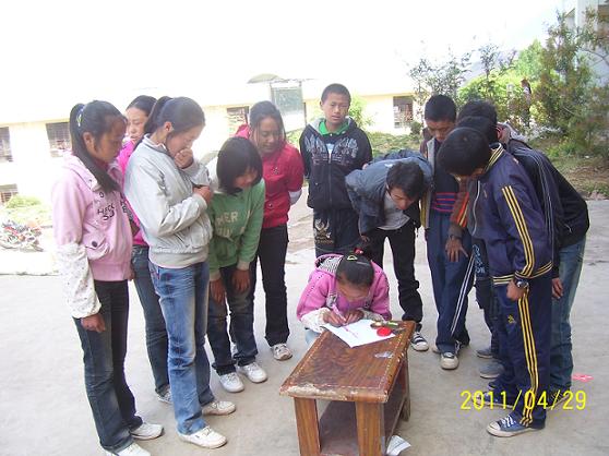 新营盘中学发放资助款(与第84批发放资助款一起拍照)。