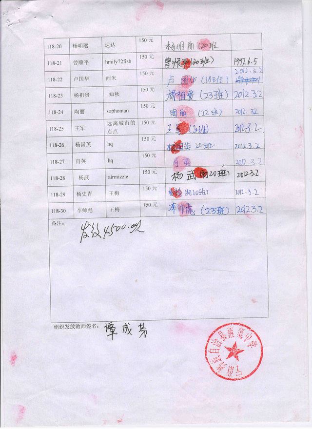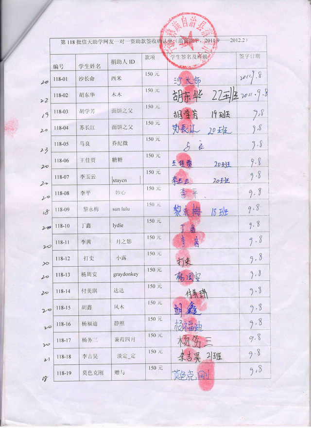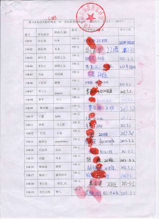 备注:该批次受助生签收单(2011.9--2012.2)漏发了,现补发上,谢谢!