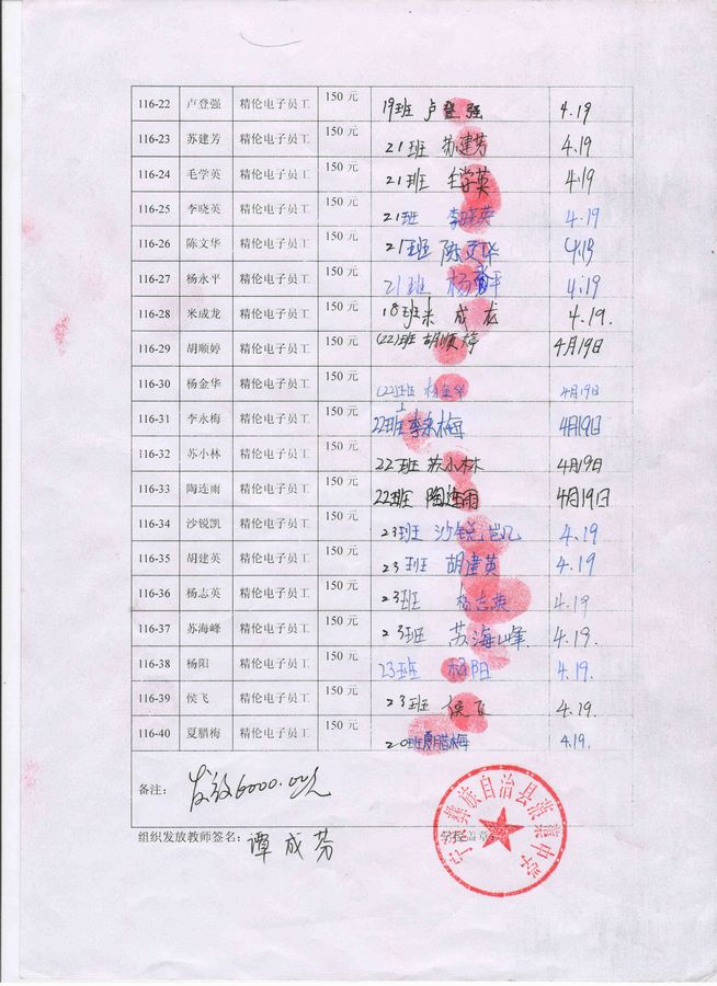6、全部捐助款到漫步轻灵这里后,她会按学期分次汇给浦理智老师,浦理智老师和学校的负责老师再分发给受助学生(学生每学期收到150元),一一签字确认。知识改变命运,愿这些学生将来不再重复父辈们那艰辛苦难的日子。
