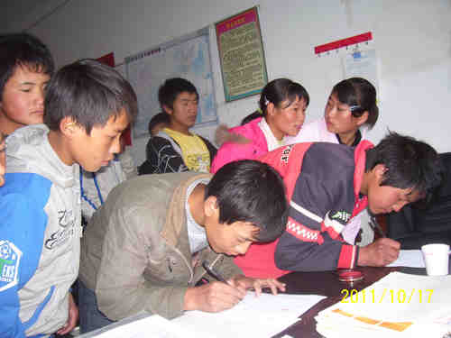 信天助学第92批烂泥箐中学学生领款签字(与第109、110批学生领款一起拍照)。