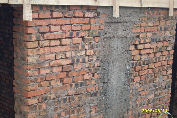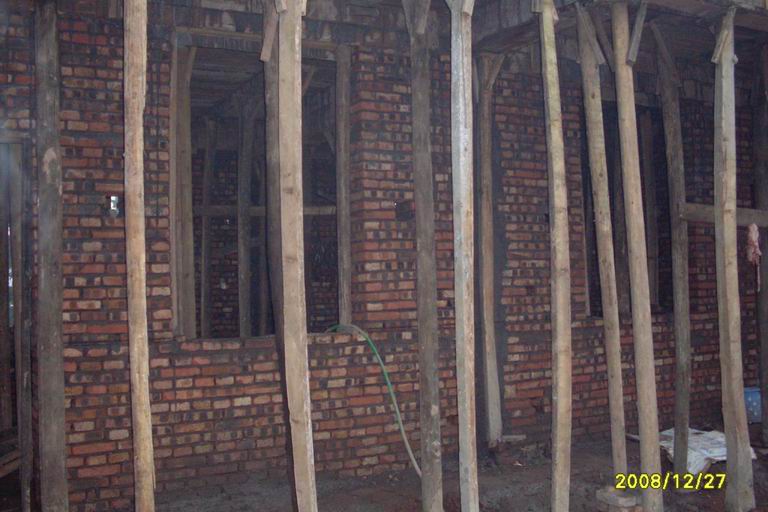 由于沙子运不上去,墙面还有很多没有抹面……