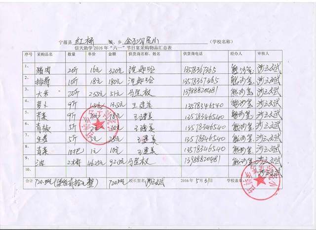 红桥中心校2016年六一节日宴采购物品汇总表(金子沟完小).jpg