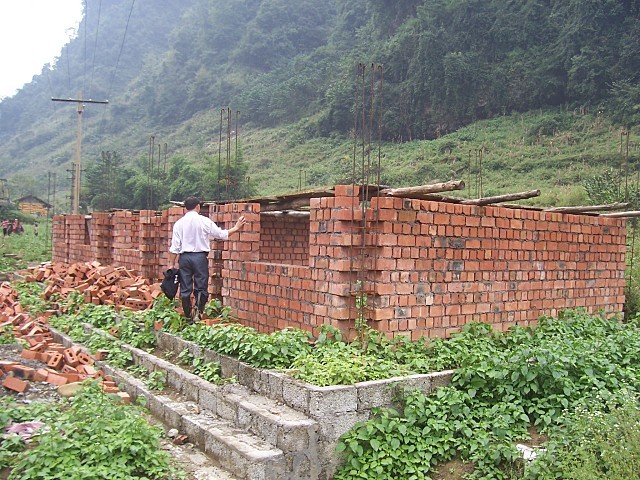 墙体已经基本砌筑完成,准备做圈梁了——是按照能够防备十级烈度地震来考虑的,要让孩子们有个安全的学习环境……