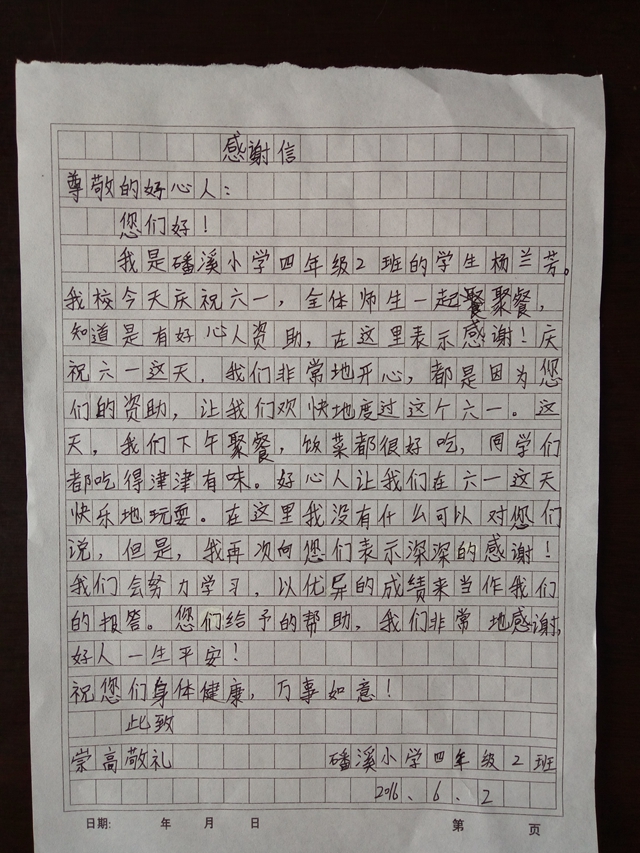 学生写的感谢信