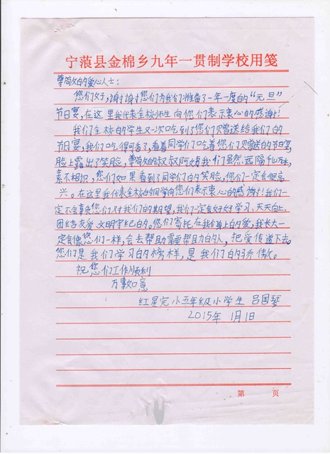 2015年元旦节日宴学生感谢信(金棉乡,红星完小).jpg