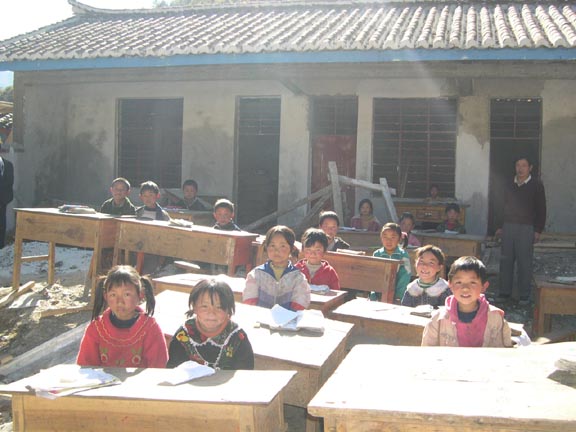 现有2个年级,学校修建好后,再扩招2个年级,成为1-4年级都有的村小。