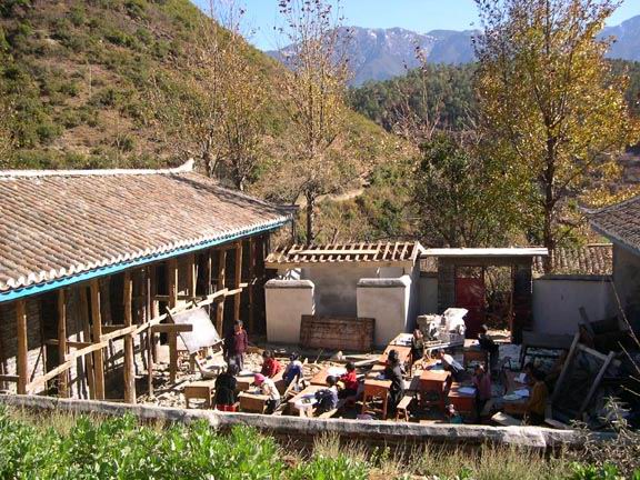 三、学校位置:位于丽江地区西北深山区,距离金沙江约15公里,距离泸沽湖约65公里,距离宁蒗县城约50公里,从宁蒗县城坐车要3-4个小时到翠玉乡(道路塌方时徒步要1天,其中有22公里的泥泞土路),从翠玉乡到学校有7公里不通车的山路,徒步约1.2个小时,建材运输均需马帮和人力驮运。