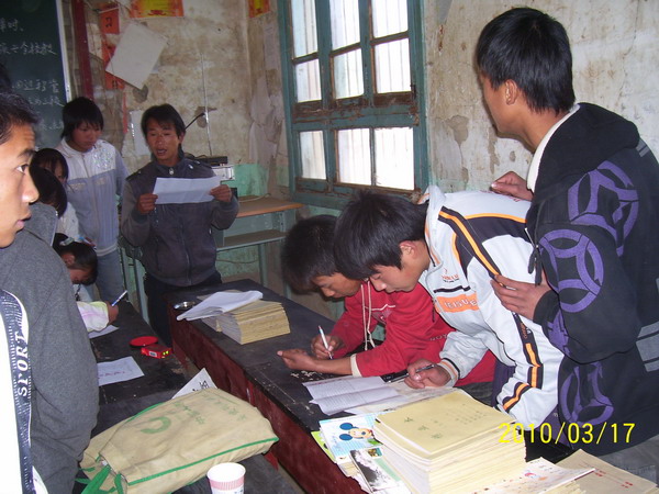 受委托发助学款发放照片,以下蓝色字体为发放款项的浦理智老师的说明: