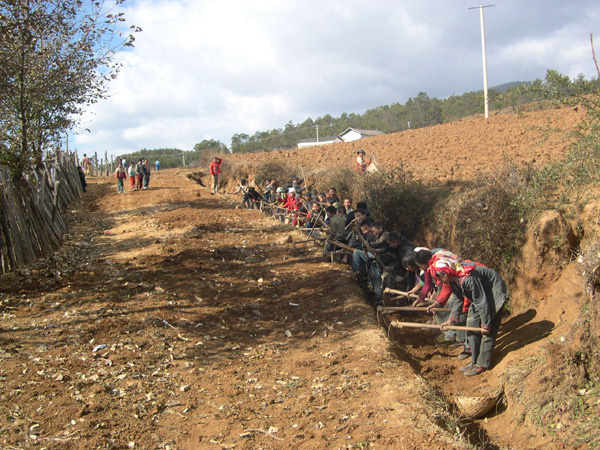 彝族的妇女很苦,刚到的那一阵子正是农忙,在种土豆什么的,弯腰劳动的尽是女的.问旁人,那些男人到哪里去了?回答了一大通,大致的意思是或者找钱去了吧,这个民族的妇女就是担负这么多的之类的话.