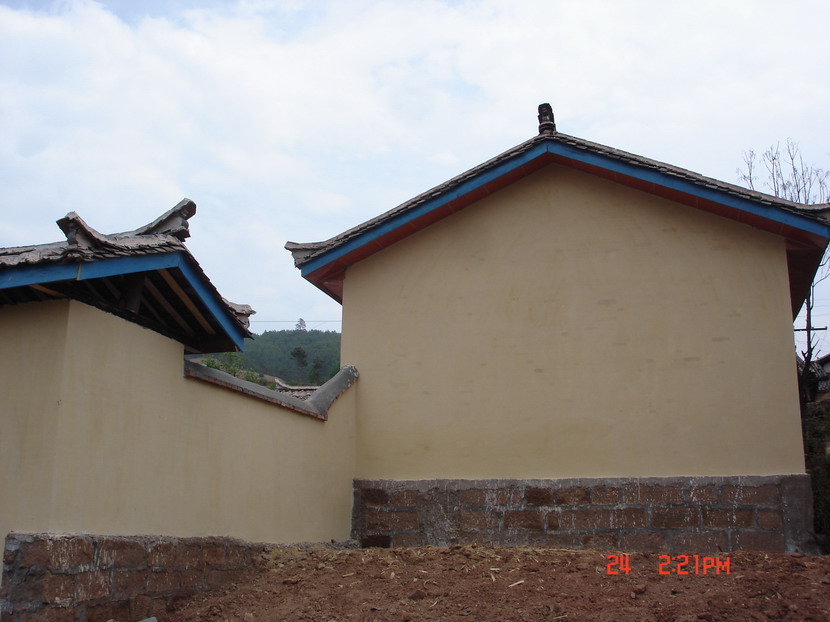 右边的教室墙体工作已经完成,屋顶的木质框架也搭好了,只等着铺上瓦片,二间厨房最早成形,因为那也是可敬的工人师傅们的临时厨房和宿舍。