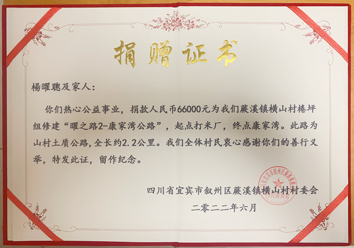捐赠证书