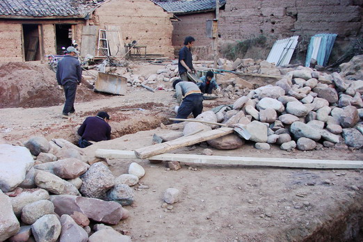 开工后的照片:杨春林拍摄,他在上海上大学,是我们一对一资助的大学生,刚好老家就是岔河村的,太巧合了,春节回老家,小杨就帮我们拍摄了修建时的照片。