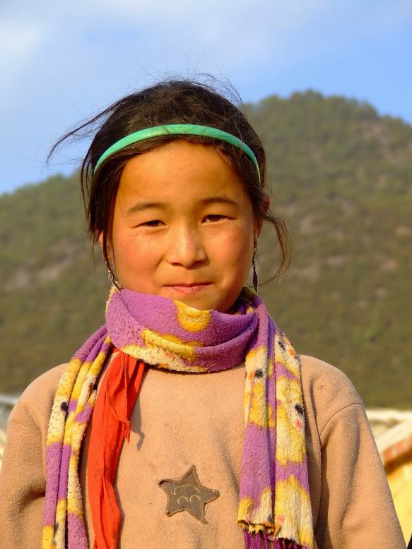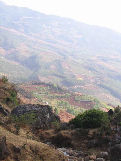 在路途中看到离县城不远的一些村民种植了各种农作物,也许这些就是他们的经济来源。而白杨村由于地势的限制,只能种植玉米、土豆及洋芋,少许地方可种植苹果,我想如果不是地势的限制,也许白杨村早可脱离现有的贫困。在满是颠簸的盘山路上,我开始晕车了,虽然窗外阳光明媚、白云缭绕,但我已无暇心情去感受了,只是希望快到宁蒗。