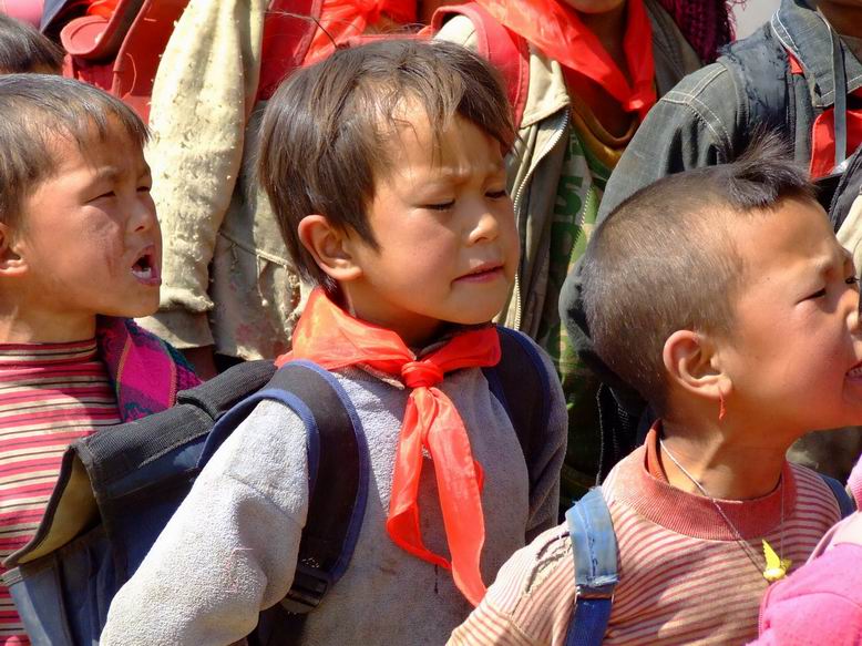 在之后与老师的交谈中得到的一些信息更让我震惊。白杨村一共有168户人家,分布在各个山上,但学校只有一个,所以有的学生每天要步行3个小时来上学,那每天有6个小时花费在上学路上。学生一般一天只能吃二顿,有些孩子中午会带些洋芋或土豆来充饥,所以孩子们都是又瘦又小。另外关于学费,政府为贫困地区的学校免去了学费,但每学期还需交10元的学杂费,而有些学生连10元也交不起,心里不禁一阵心酸。