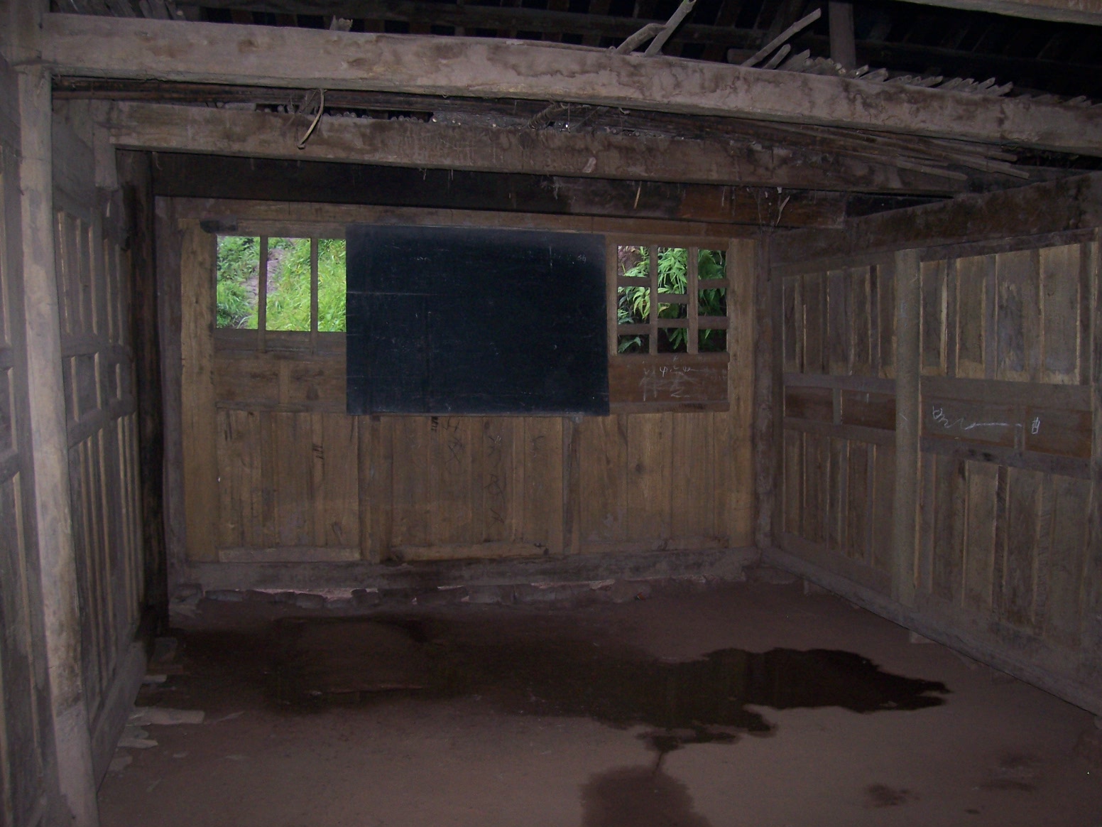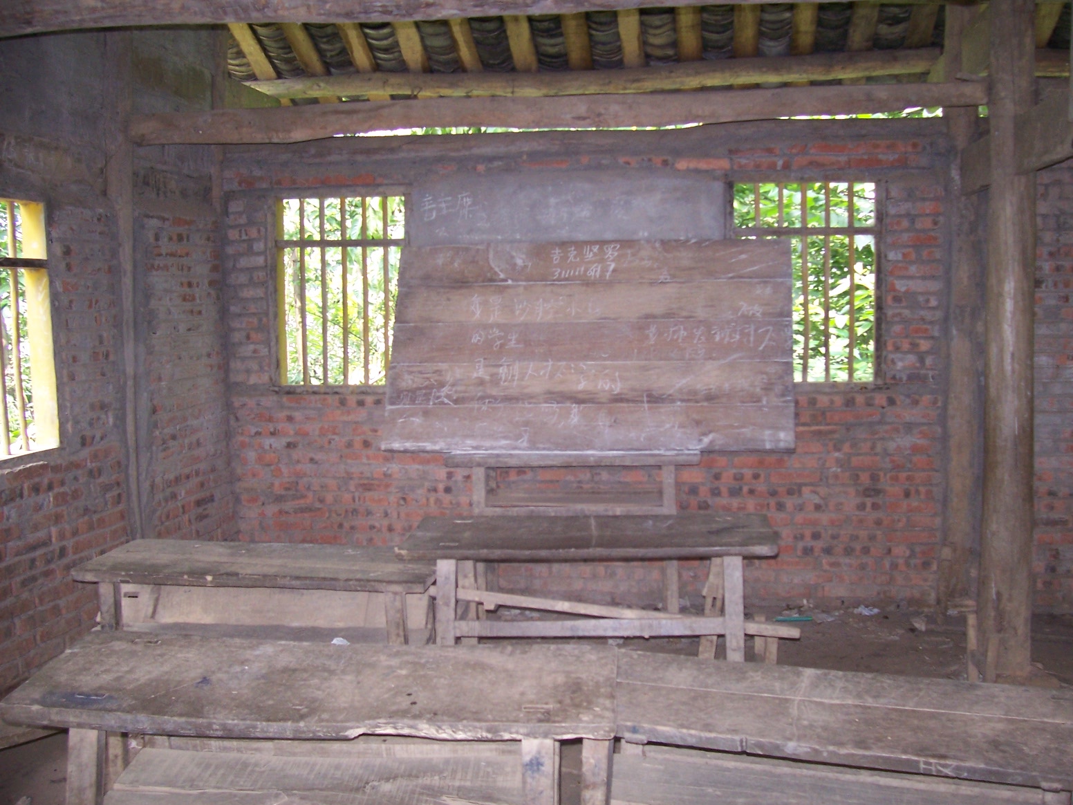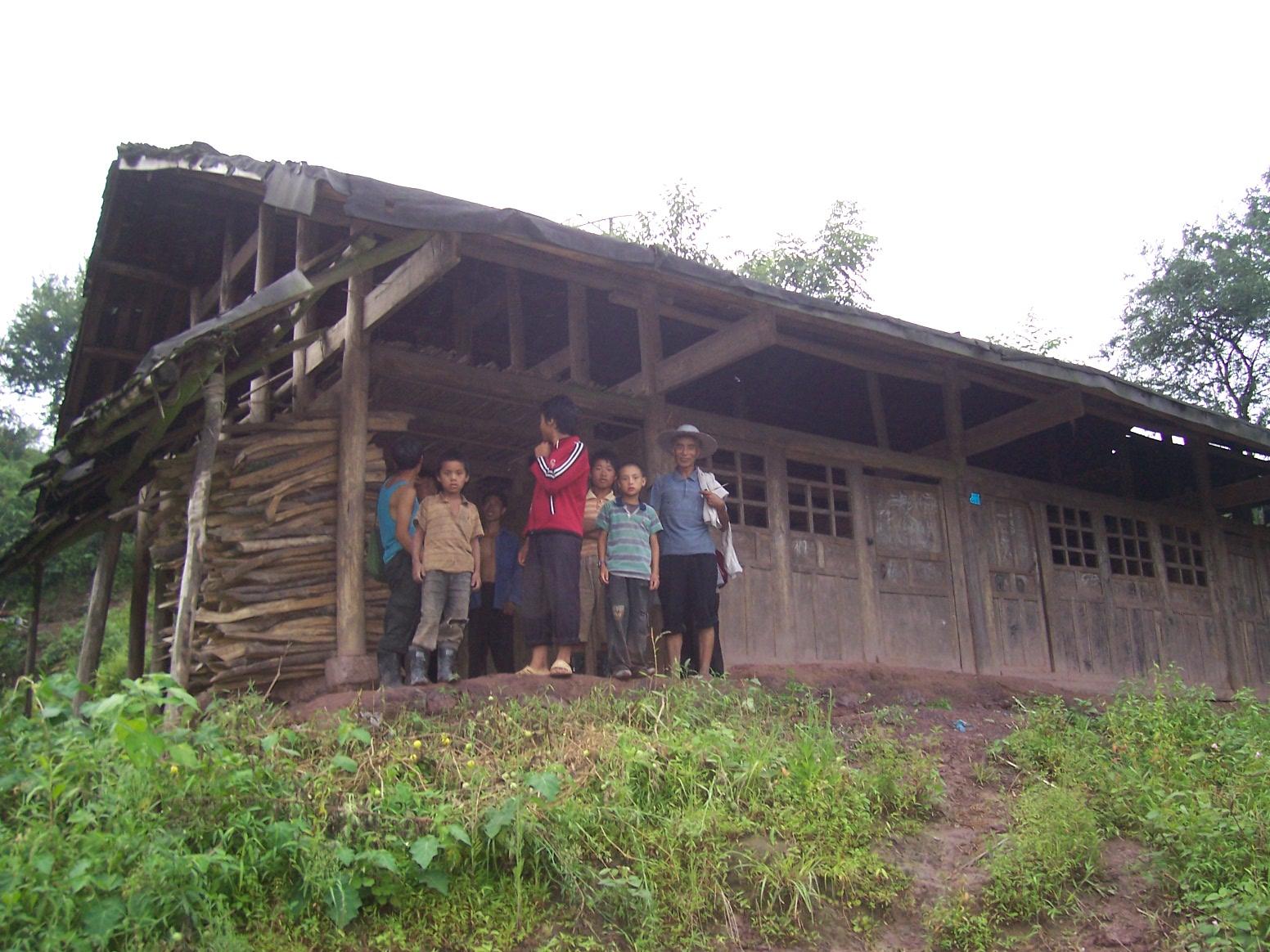 到这里的第一个村校是吉佧巫能校长带我爬山的。这个村校属于沙腔村,服务于上沙腔和下沙腔两个村民组,有70多户人家、300多人口,现在只有一个班级、15个孩子,一个代课教师。房子是 木结构瓦房,刚维修过,还算完好,但建在一个山梁上,只有一条小路通上来,离开居民太远……