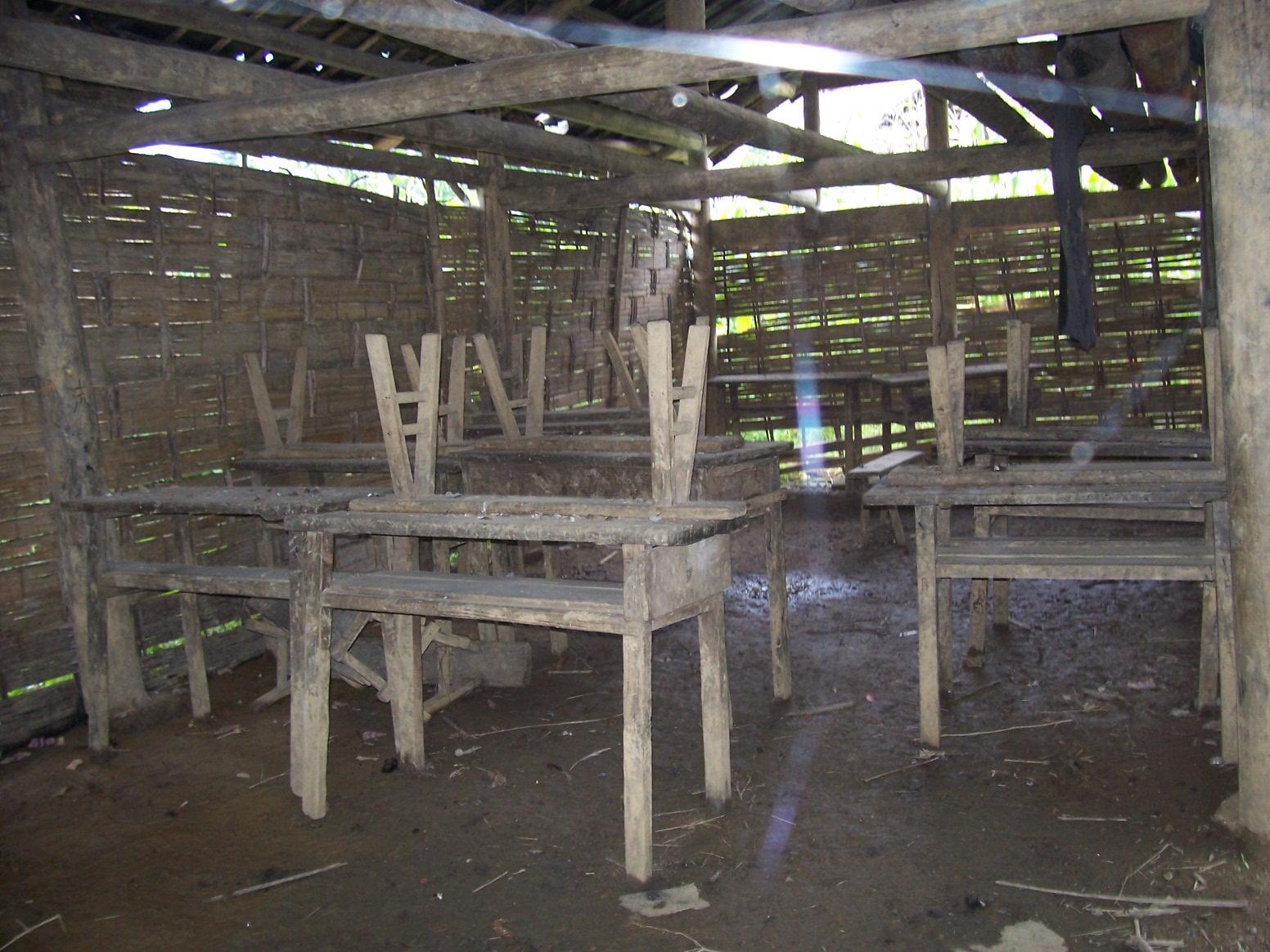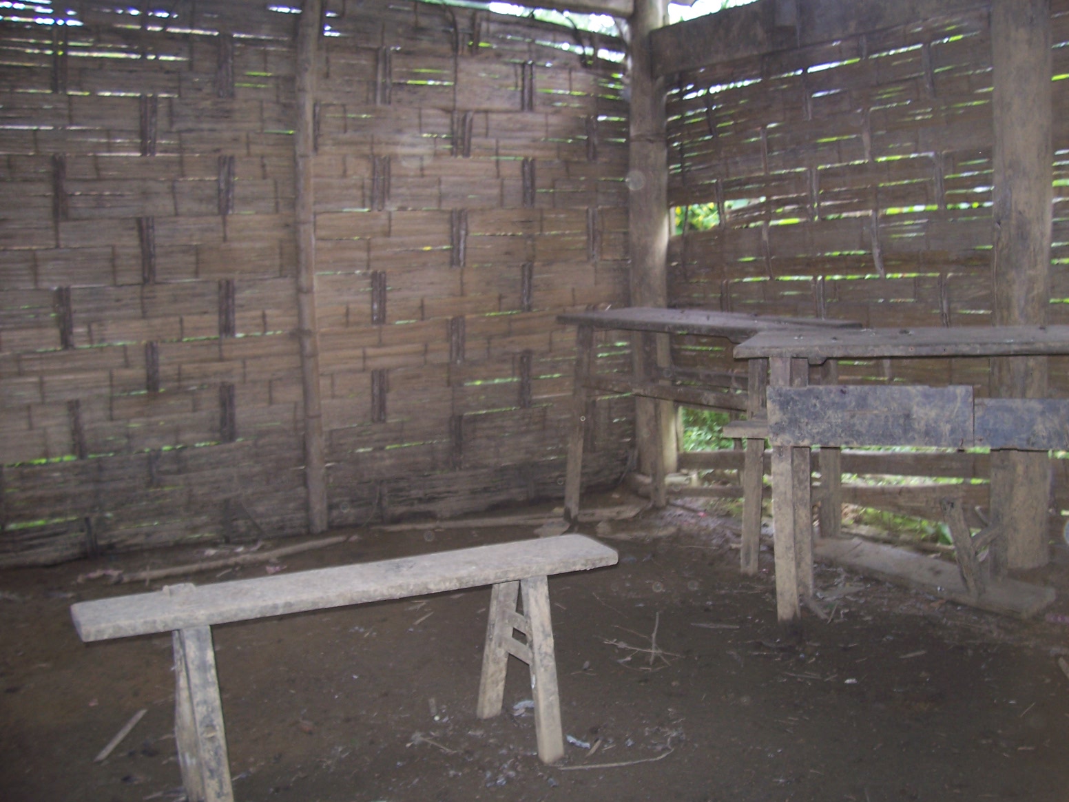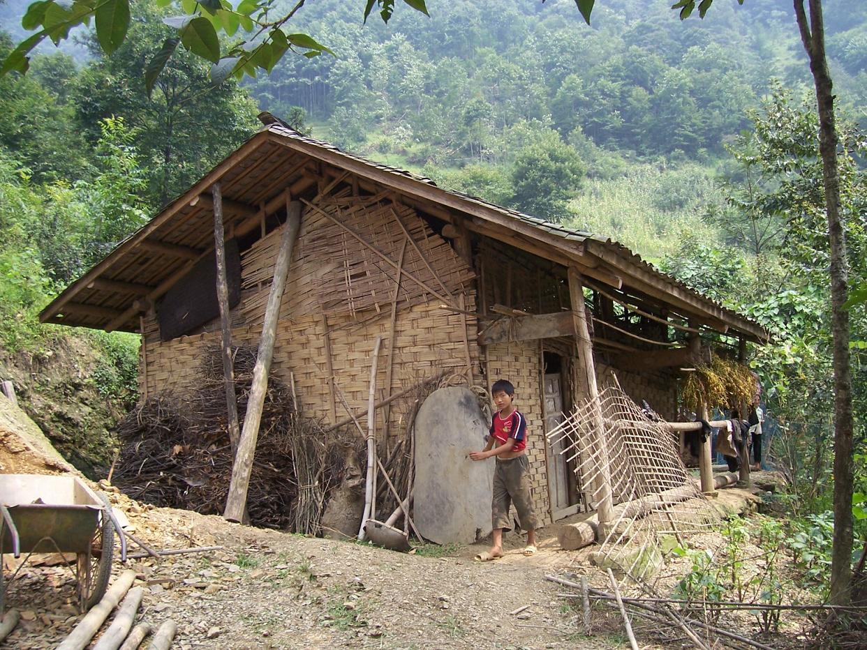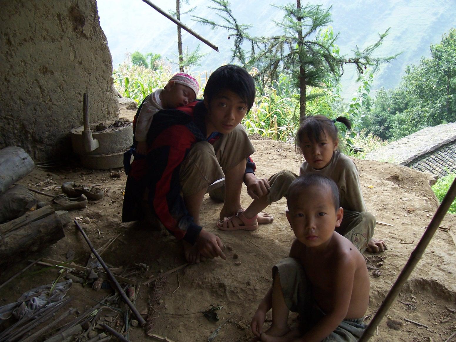 到这里的第一个村校是吉佧巫能校长带我爬山的。这个村校属于沙腔村,服务于上沙腔和下沙腔两个村民组,有70多户人家、300多人口,现在只有一个班级、15个孩子,一个代课教师。房子是 木结构瓦房,刚维修过,还算完好,但建在一个山梁上,只有一条小路通上来,离开居民太远……