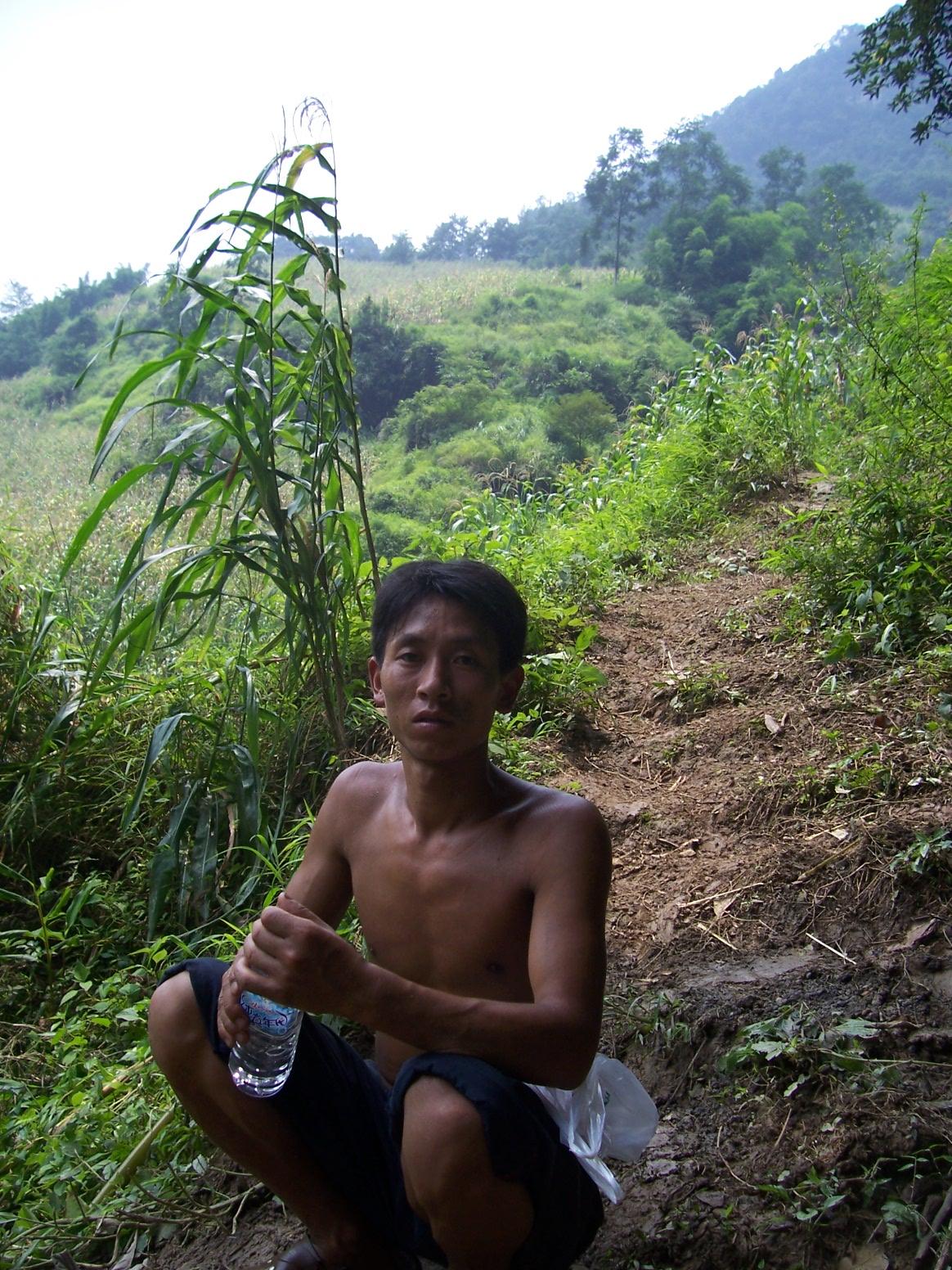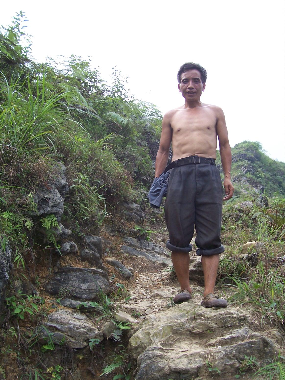从沙腔的山上下来,校长安排一个代课教师带我去爬对面的山,那里现在也有一个村校——弯板凳小学。