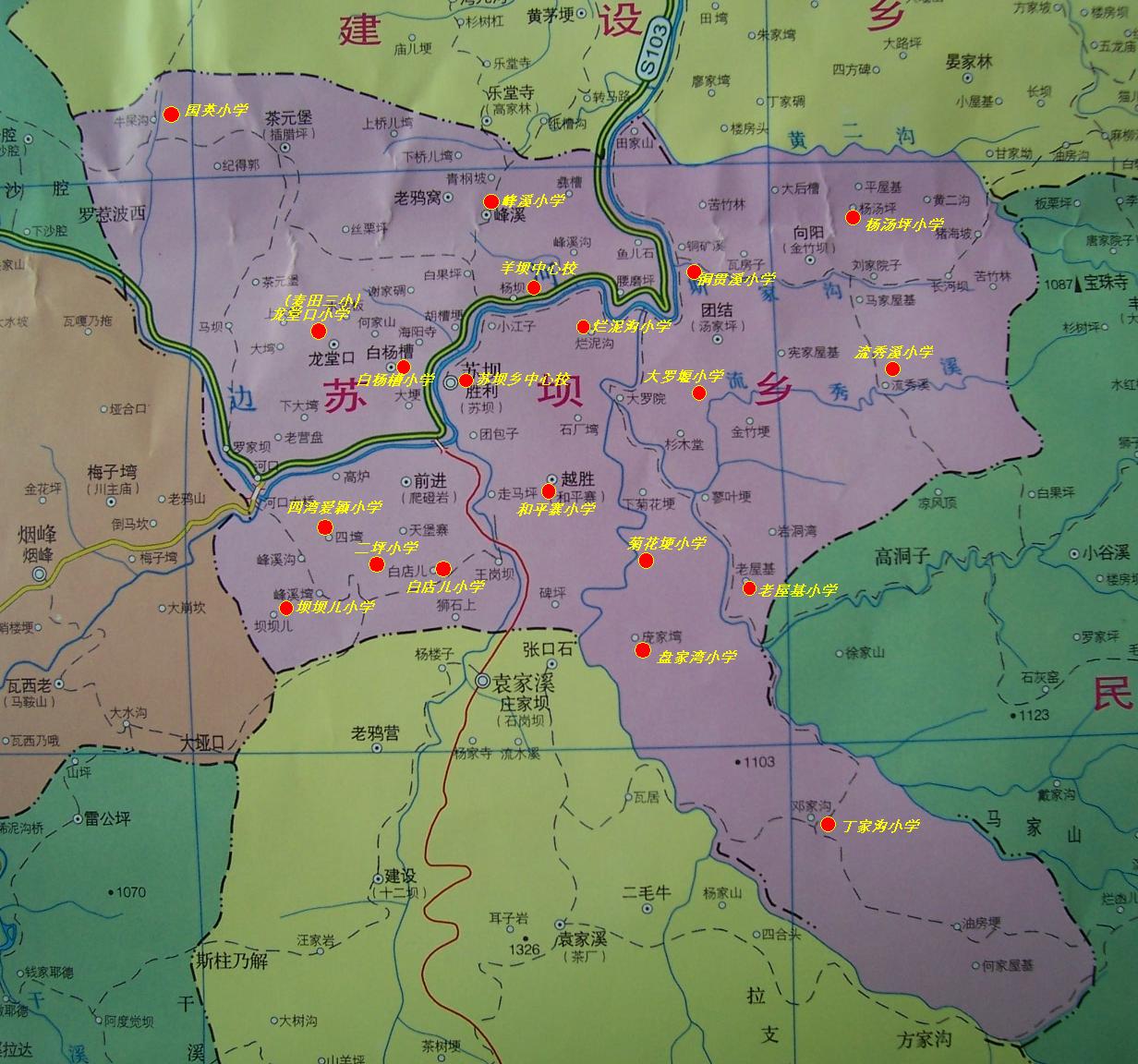 至此,我已经走完苏坝乡的所有待建村校,把苏坝乡校点分布图发上来,便于大家了解。