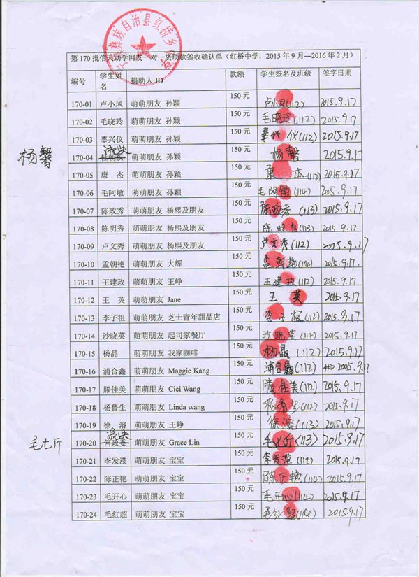 第170批红桥中学(2015年9月-2016年2月)受助生签收单
