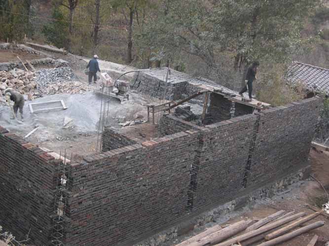 十、修建方式:此学校不发包材料,属于我们自己选订材料,运输至工地。施工队只收取人工费,当地村民出大批义务工,村里出木头、石头等当地能提供的材料。