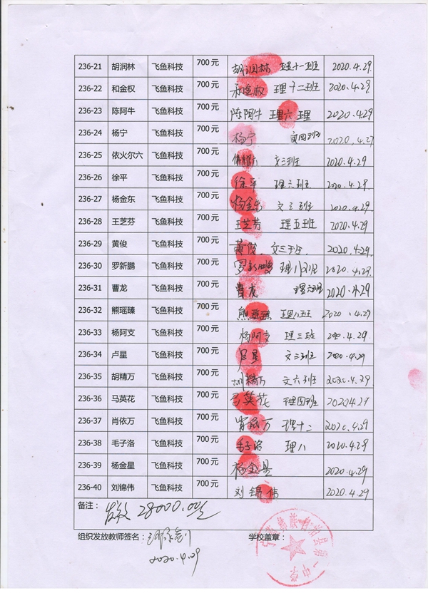 标题: 第236批受助学生名单(宁蒗一中40名,飞鱼科技)