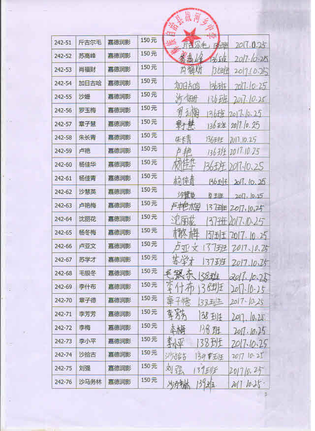 第242批战河中学(2017年9月-2018年2月)受助学生签字确认单