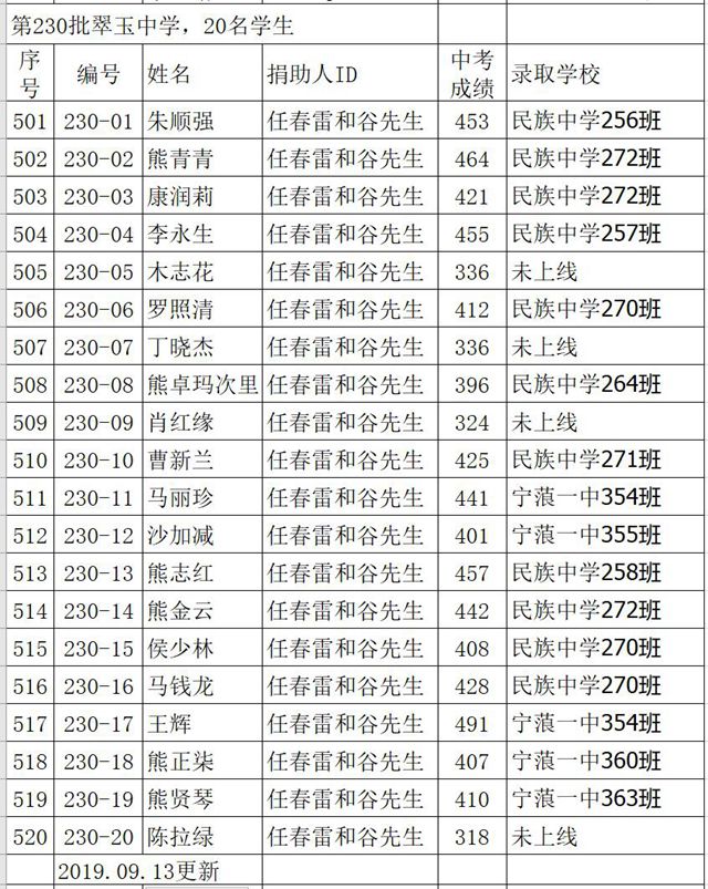 标题: 2019年信天助学中考成绩及录取学校(2019年9月13日更新)