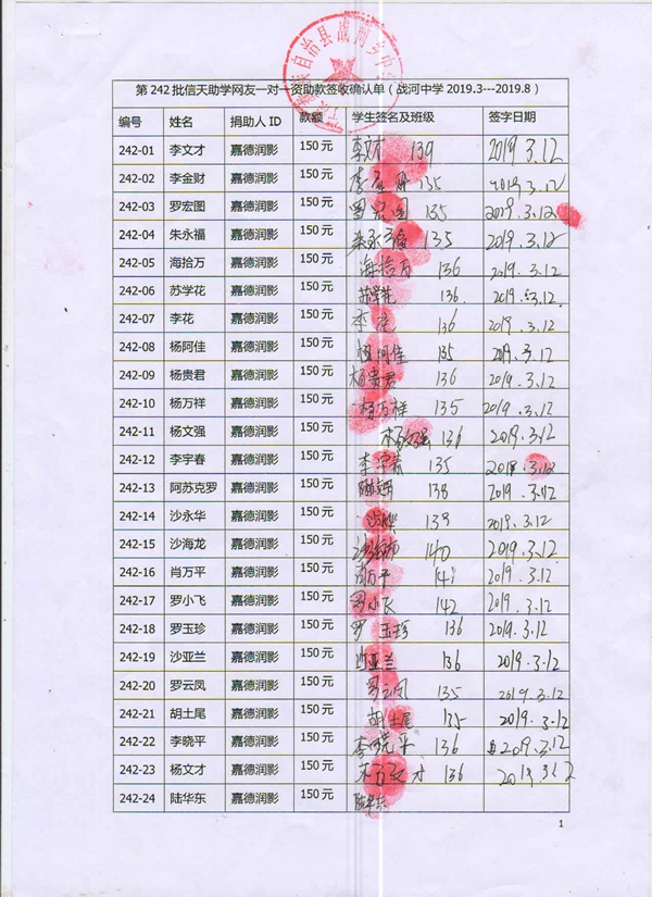 242-75刘强,因中途转学,资助转给沙学青;