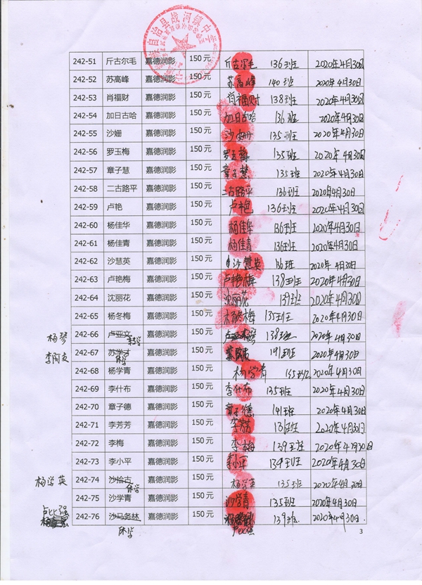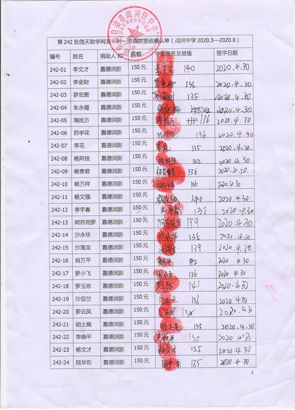 第242批战河中学(2020年3月-2020年8月)受助学生签字确认单
