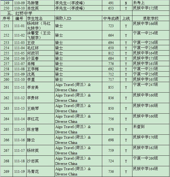 新编号------原编号----学生姓名-----捐助人ID -----中考成绩--------录取学校