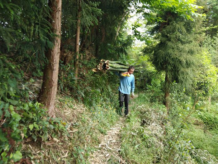 不通公路,村民劳动靠肩扛背驮。