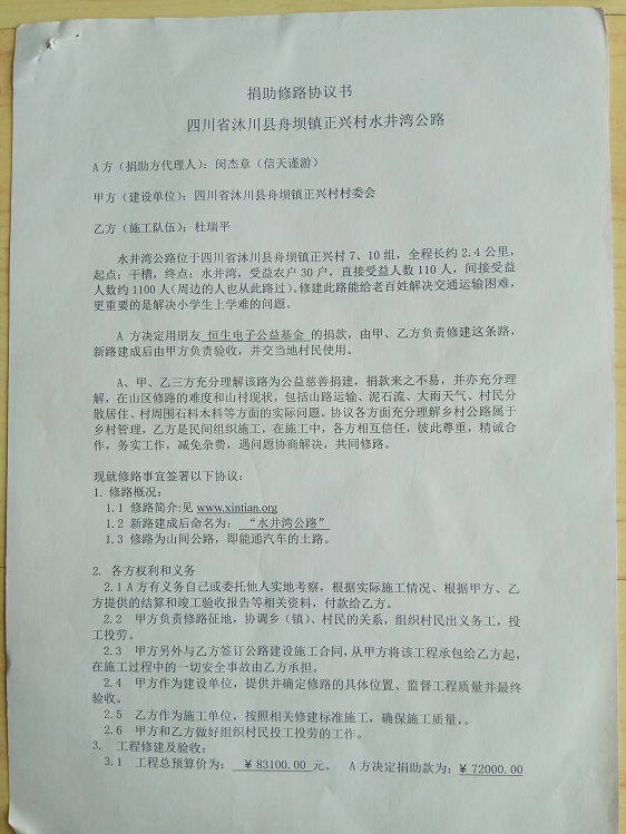 捐助修路协议书