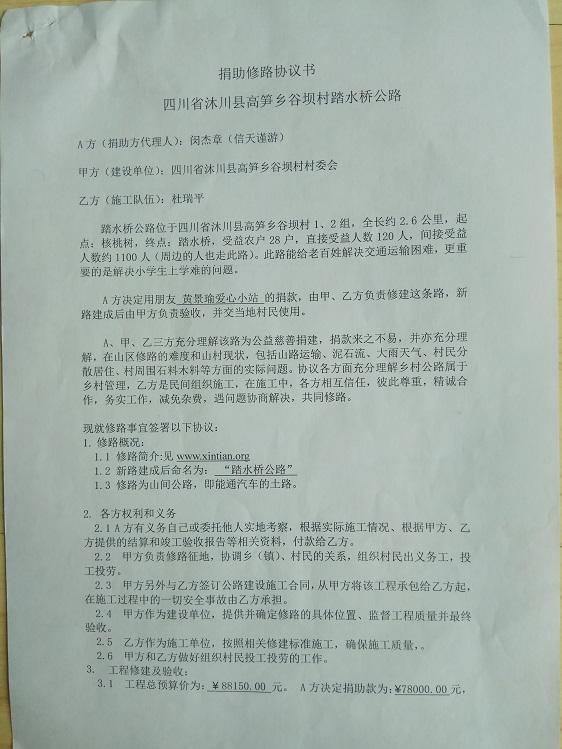 捐助修路协议书