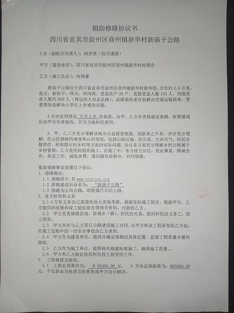 捐助修路协议书