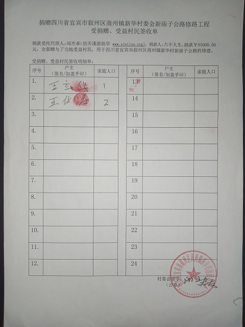 受益村民签字单