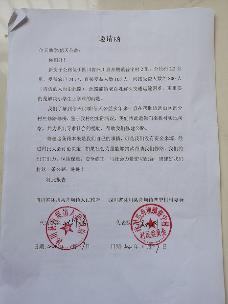 新房子公路位于四川省沐川县舟坝镇普宁村2组,全长约2.2公里,起点:新房子,终点:集体茶场。受益农户24户,直接受益人数105人,间接受益人数约800人(周边的人也走此路)。此路能给老百姓解决交通运输困难,更重要的是解决小学生上学难的问题。村民修路决心很大,全力集资,300元/户,共集资7200元,计划修通土路、支路、涵管、并铺设部份路面块石,力争雨季也能通车。
