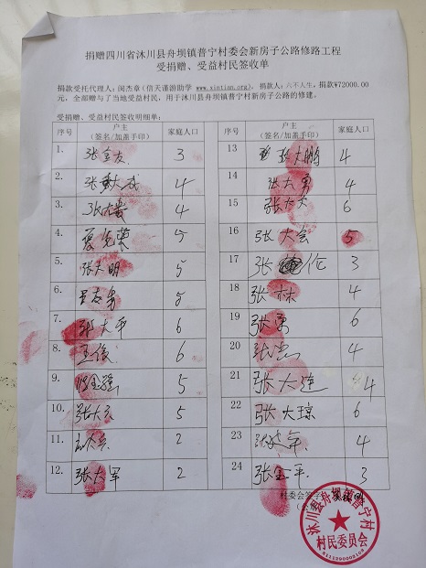 受益村民签字单