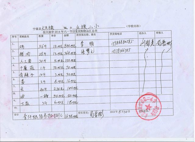 红旗中心校,红旗二小2014年六一节日宴采购物品汇总表.jpg