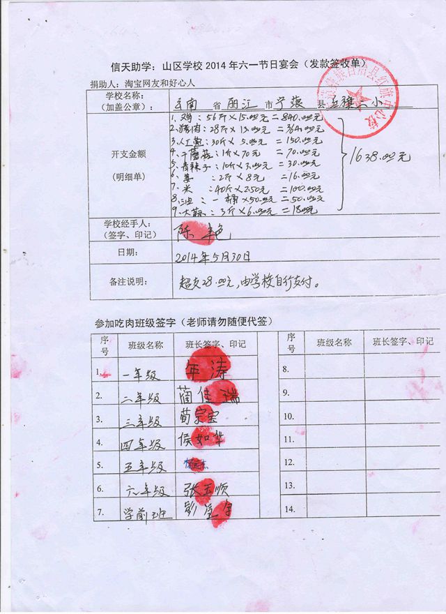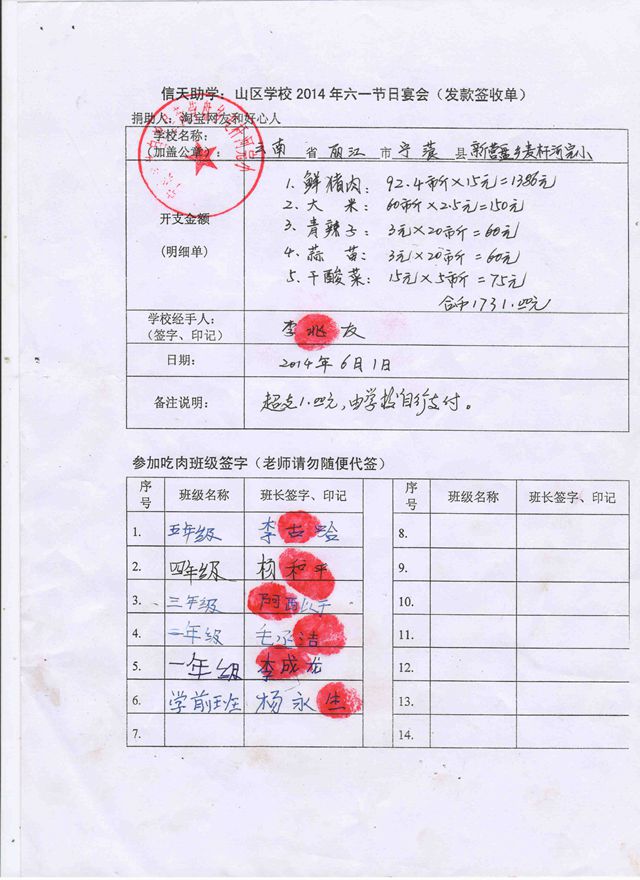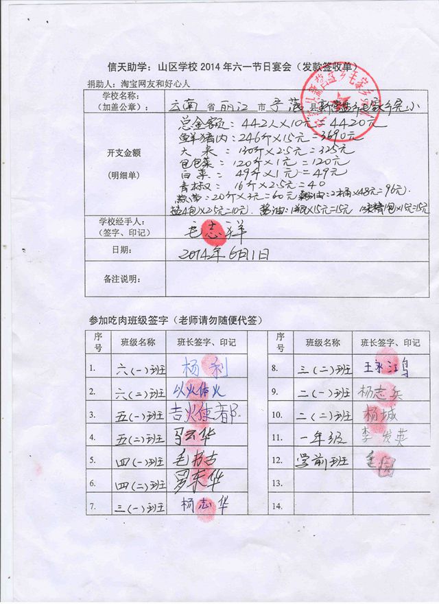 红旗中心校,红旗二小2014年六一节日宴发款签收单.jpg