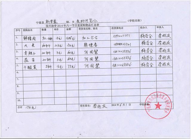 新营盘中心校,麦杆河完小2014年六一节日宴采购物品汇总表.jpg
