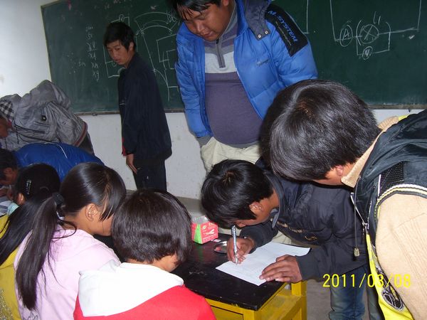 信天助学第92批烂泥箐中学学生领款签字(与第109、110批学生领款一起拍照)。